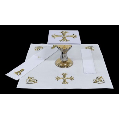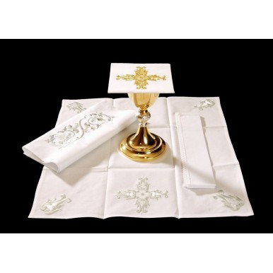 Die von unserer Firma angebotene Glocke ist in Sets erhältlich, darunter ein Handtuch, ein Corporal und ein Finger. Extrem große Auswahl an möglichen Stickmustern und Garnfarben. Unter den präsentierten glockenförmigen Dessous gibt es Vorschläge, die mit weißen, goldenen und farbigen Fäden bestickt sind.