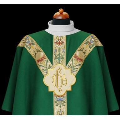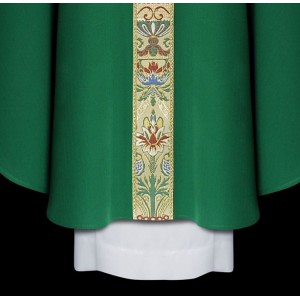 Embroidered chasubles with satin and velvet aplications.