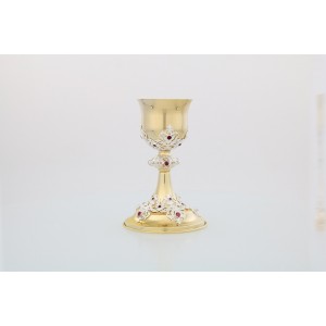 Calice ottone massiccio decorata rubini blu.
