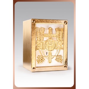 Tabernacolo è realizzato secondo gli standard al giorno d'oggi. Ignifugo e armato con entrambe le bolts.The adornents esterne orizzontali e verticali sono placcati in oro, in ottone con competenze in metallo artigianale. L'interno di questo tabernacolo è realizzato in lamiera di nichel-cromo o frame brass.The dorata è fatto di pareti doppie saldati; abitazioni puntello di esterno è acquisito in lamiera di ottone terra.