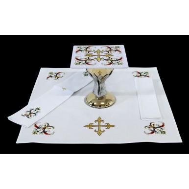 Oferowana przez naszą firmę bielizna kielichowa dostępna jest w kompletach obejmujących ręcznik, korporał oraz palkę. Niezwykle duży wybór możliwych wzorów haftu oraz barwy nici. Pośród prezentowanej bielizny kielichowej znajdują się propozycje wyszywane nicią zarówno białą, złotą jak i barwną.