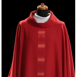 Lekki i nowoczesny ornat haftowany nićmi w kolorach tkaniny. Ornat uszyty w stylu monastycznym z wszyta wewnętrzną stułą.