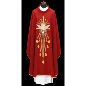 Ornat haftowany uszyty z lekkiej, wysokiej jakości tkaniny ozdobiony z przodu haftem Ducha Świętego.