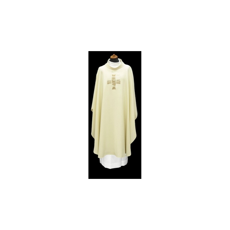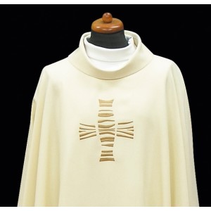 Lekki, przewiewny ornat z nowoczesnym haftowanym motywem krzyża. Ornat uszyty w stylu monastycznym ze stułą wewnętrzną.