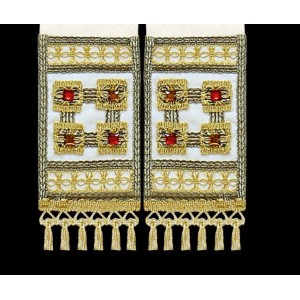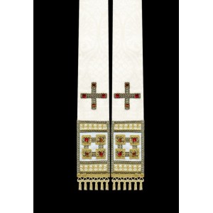 Stuła do kazań, recznie zdobiona kamieniami i taśmami.